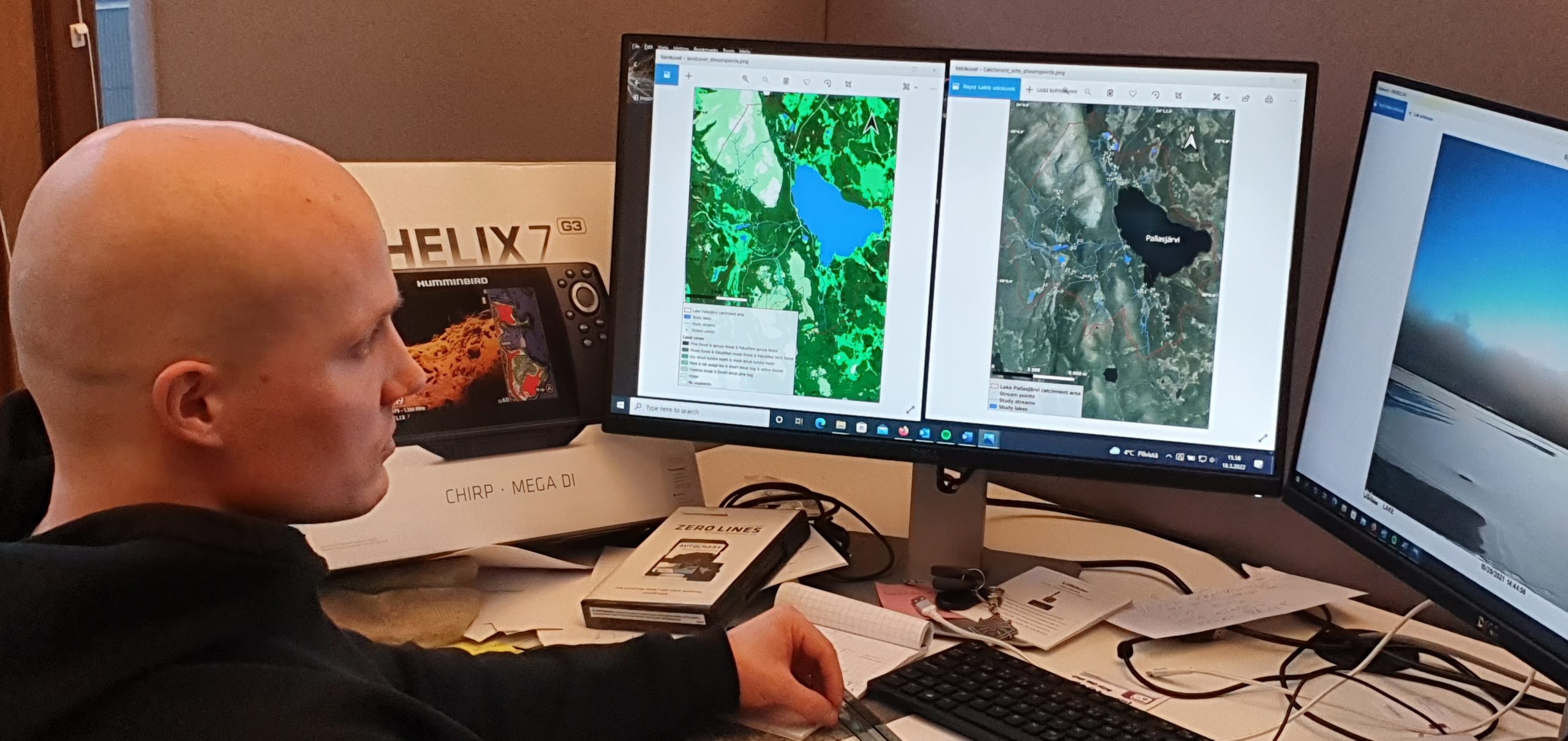 Pieni kuva. Miten mittaukset käytännössä tapahtuvat yksityiskohtia myöten. Mittausinstrumenttien käyttö, maastossa liikkuminen, muuttuvat olosuhteet. Miten mittauspisteille liikutaan ja paljonko se vie aikaa ja voimia. Miten mittaukset suoritetaan maastossa erinomaisella tarkkuudella ja toistovarmuudella. Ja AINA alati muuttuvat olosuhteet. P*skan sään päiviä pitää varata. Mitä tapahtuu jos joku laite hajoaa? Aina varasuunnitelma.