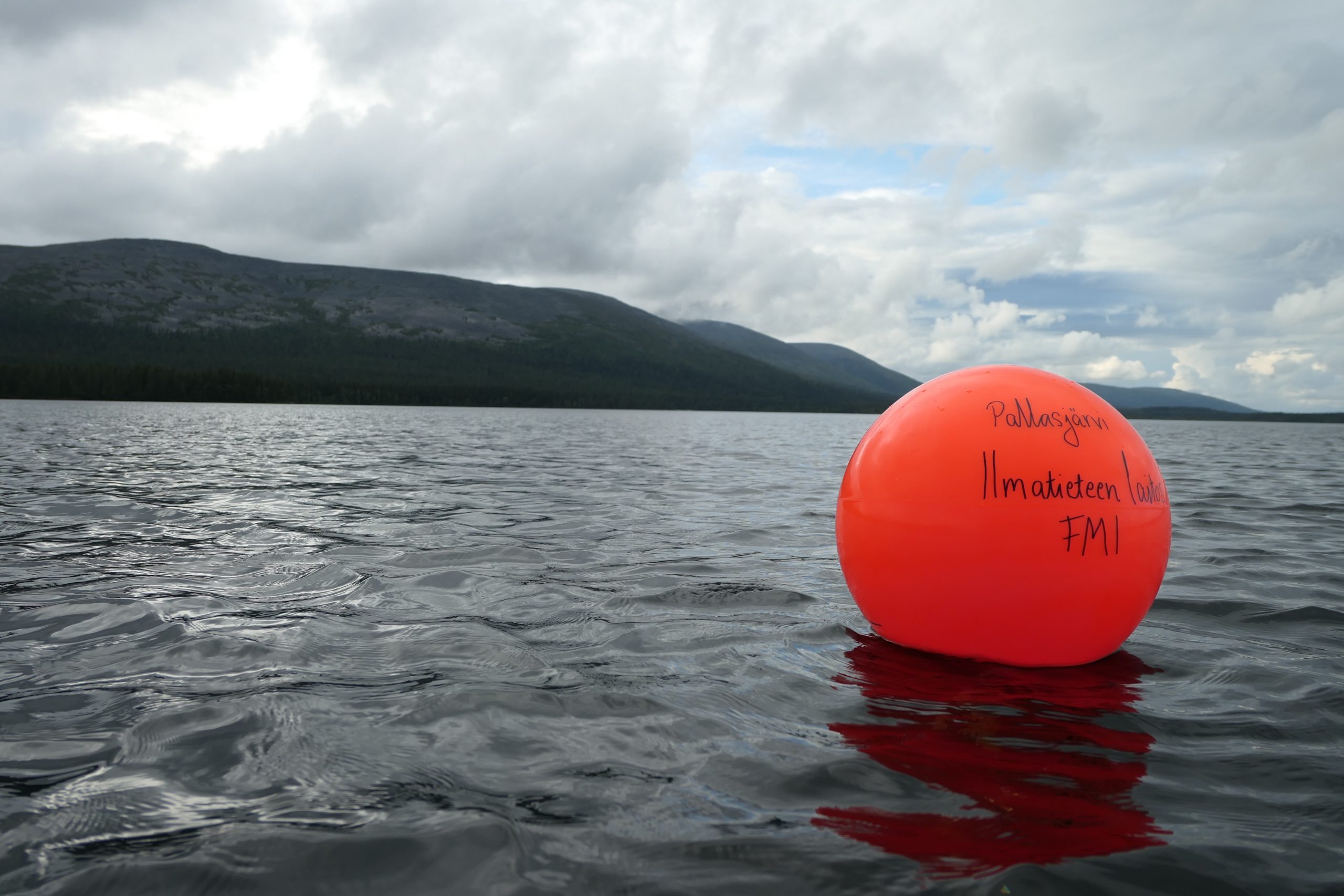 Termistoriketju mittaamassa Pallasjärven syvyyksissä.